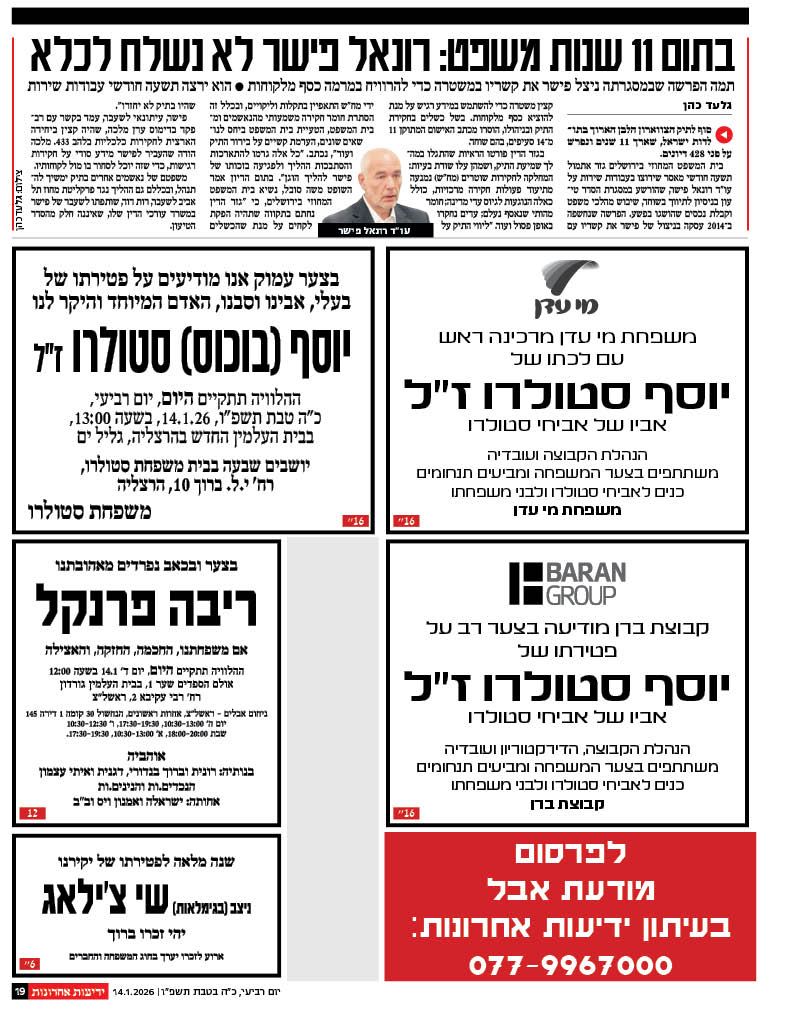 מדור ידיעות אחרונות מודעת אבל –