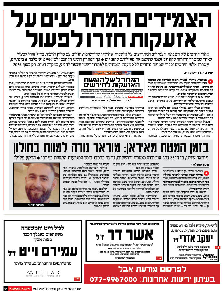 הארכיון כולל מודעות שפורסמו היום ואתמול