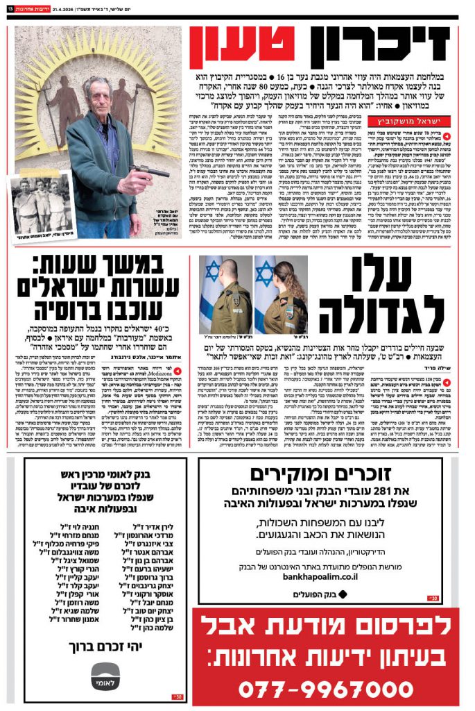 ארכיון מודעות אבל כפי שפורסמו בעיתון ידיעות אחרונות