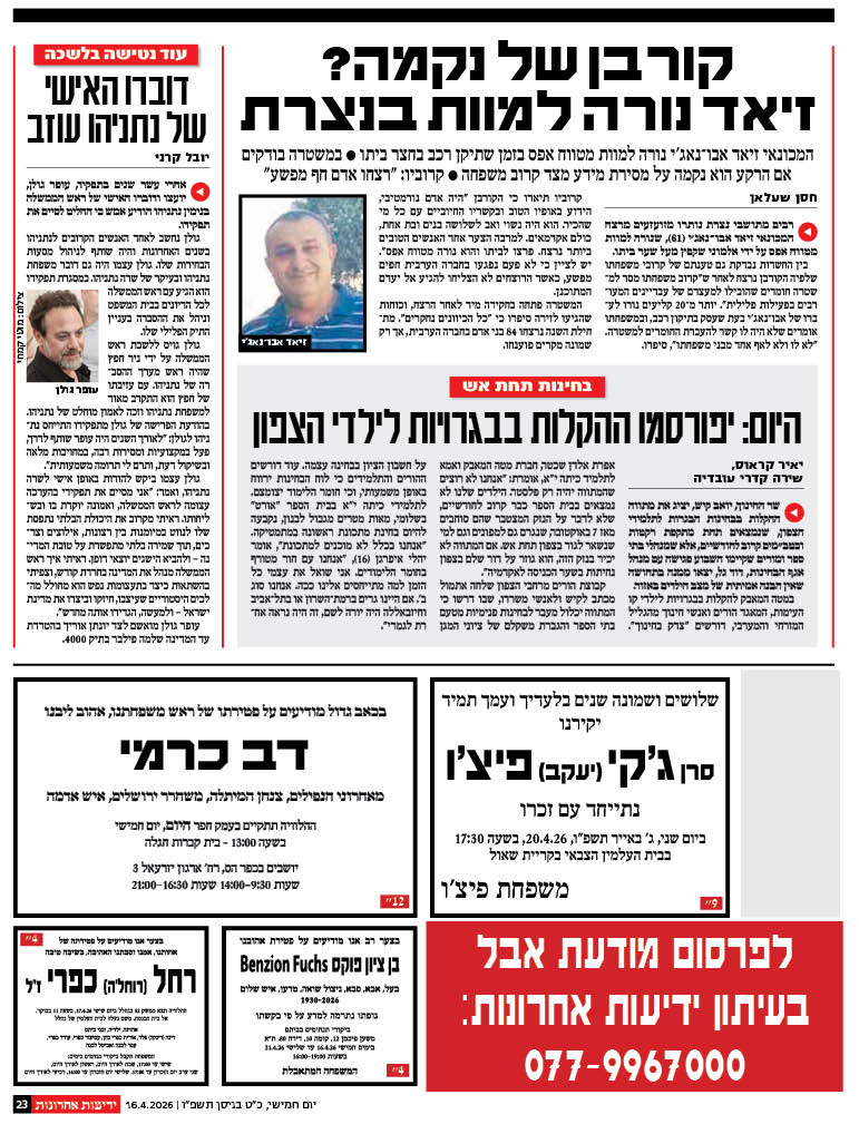 ידיעות אחרונות 16.4.2026