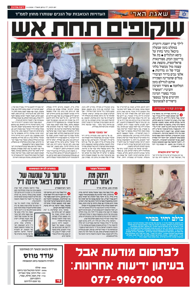 רעייתו אהובה תשב בביתה ביום ב' 23/3/26 במשען גבעתיים, מצולות ים 11,