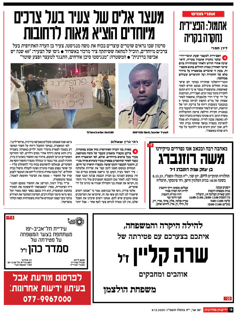 לפרסום מודעות אבל בעיתון ידיעות אחרונות חייגו 077-9967000