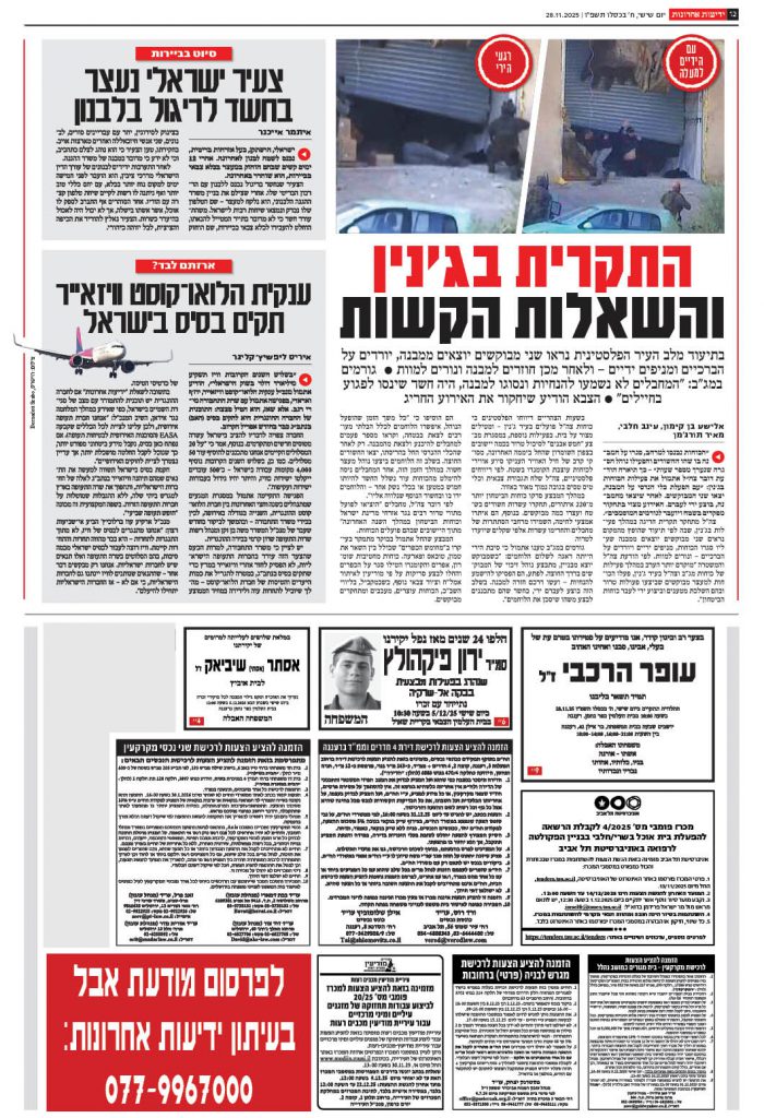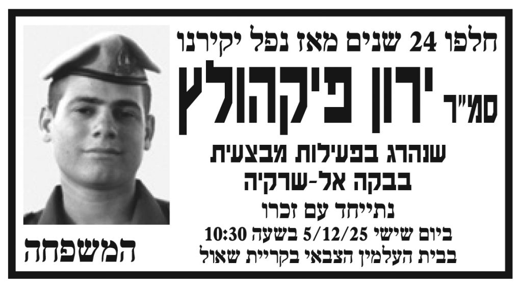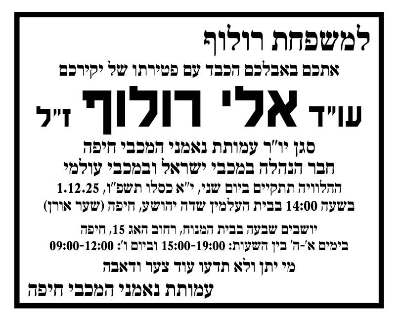 ההלוויה תתקיים ביום שני, י"א כסלו תשפ"ו, 1.12.25