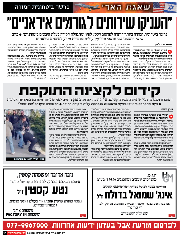 הלוויה תתקיים ביום רביעי, 25.3.2026
