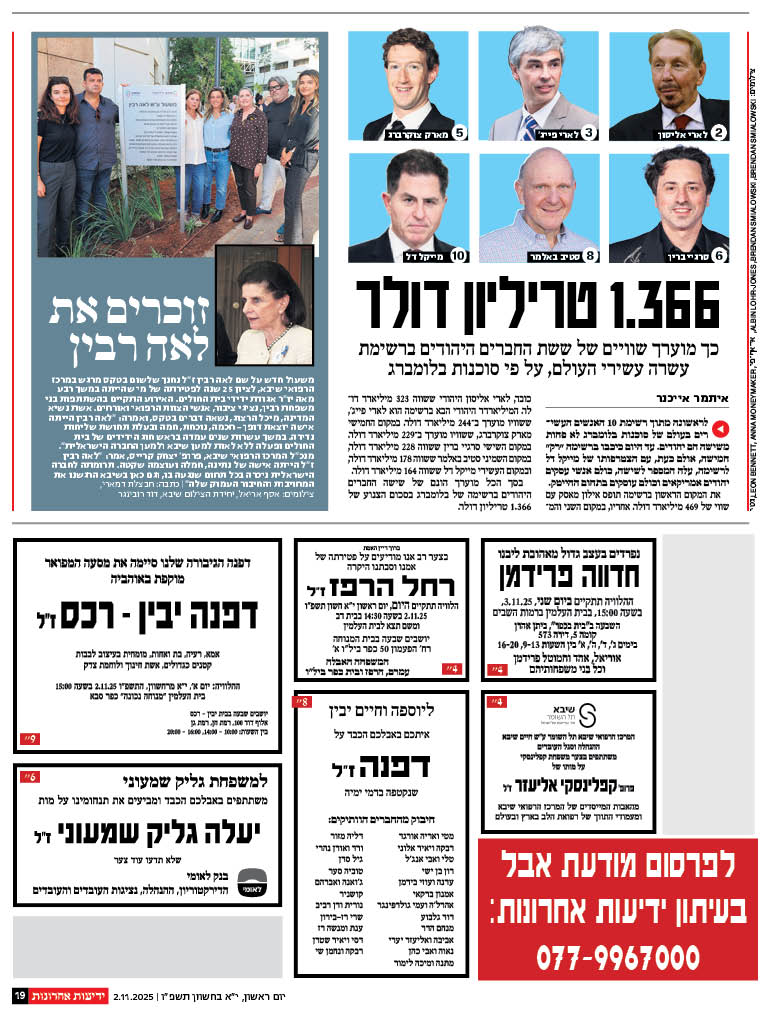 הלוויה תתקיים ביום ראשון כ"ז תשרי תשפ"ו, 19.10.25