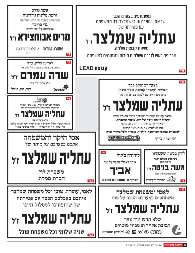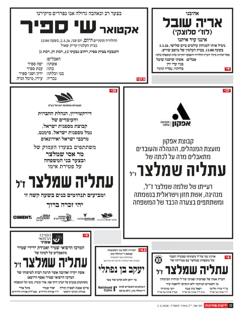 ההלוויה תתקיים ביום שני, ו' באדר תשפ"ו, 23.2.2026