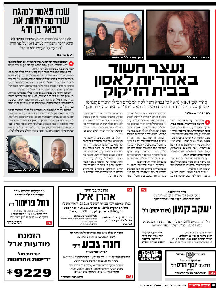 ההלוויה תתקיים ביום שלישי, 24.2.26, ז' אדר תשפ"ו