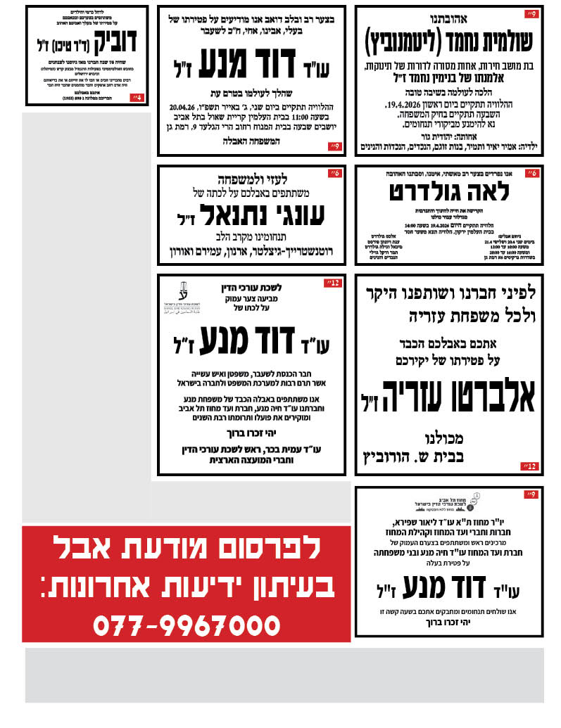 ההלוויה תתקיים ביום ראשון 19.4.2026.