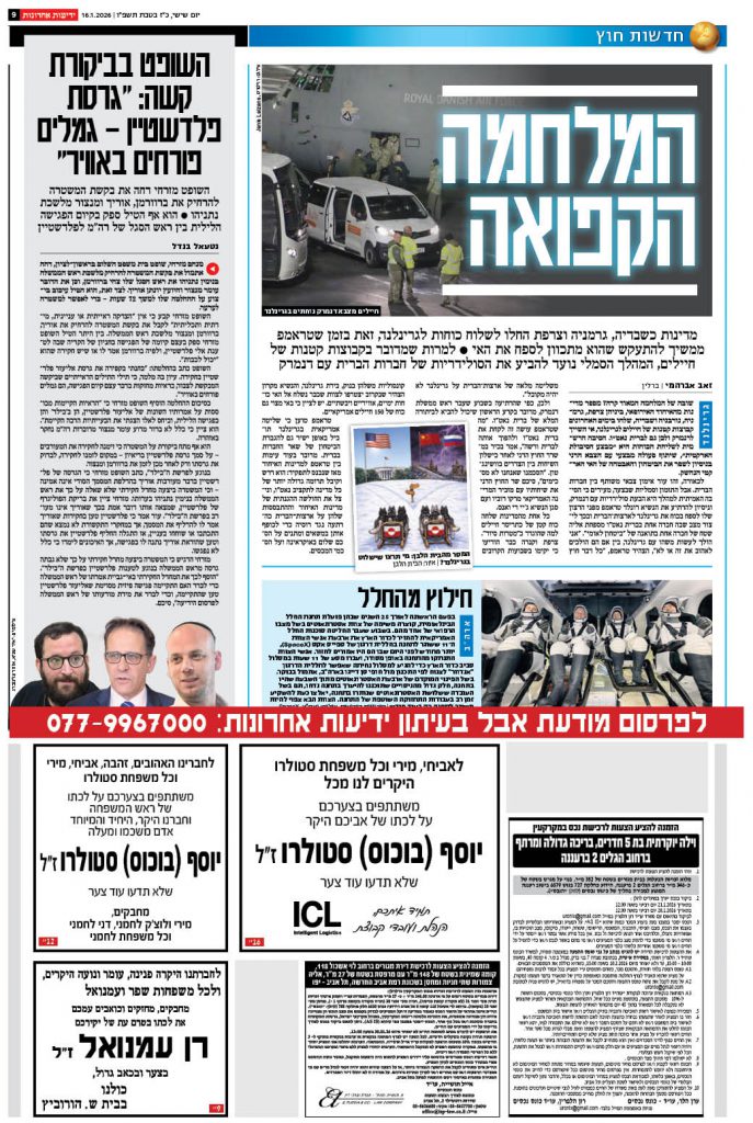 ביום שישי, 9.1.2026, כ' טבת תשפ"ו