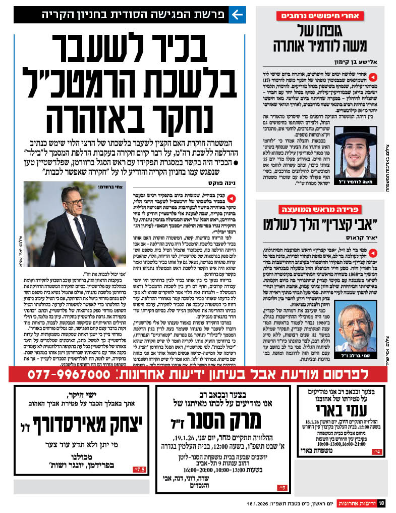 ההלוויה תתקיים ביום רביעי 7.1.26
