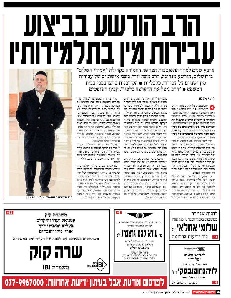 רעייתו אהובה תשב בביתה ביום ב' 23/3/26 במשען גבעתיים, מצולות ים 11,