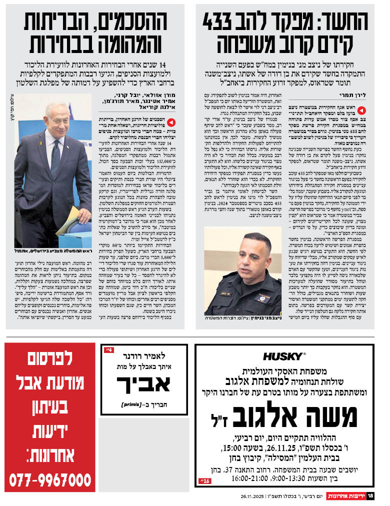 ו' בכסלו תשפ"ו, 26.11.25, בשעה 15:00,