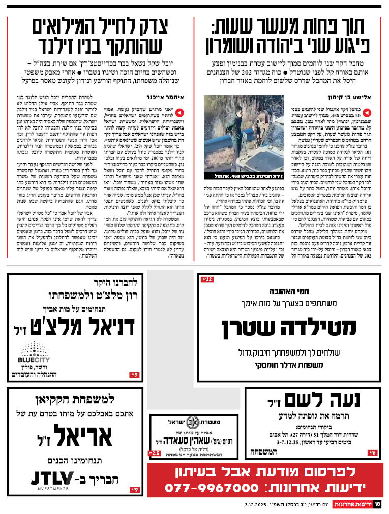 הלוויה תתקיים היום, יום שני, 01.12.2025 שעה 14:00