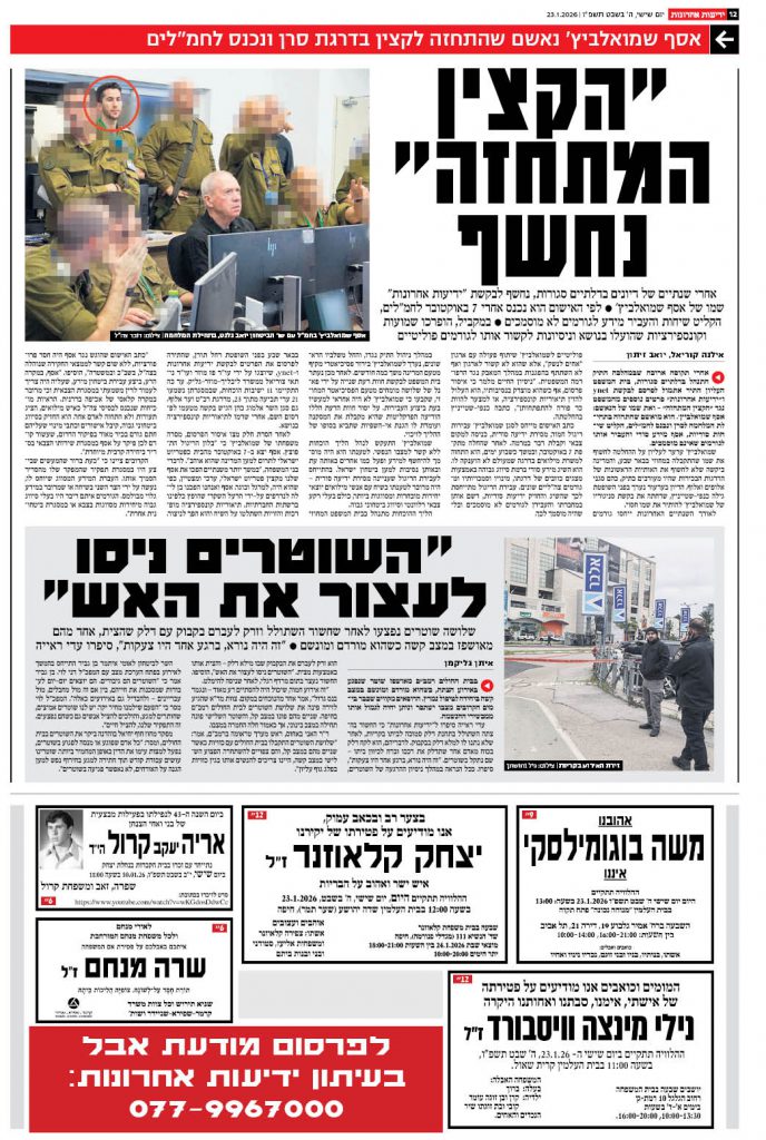 היום, יום שישי, ה' שבט תשפ"ו, 23.1.2026 בשעה 13:00