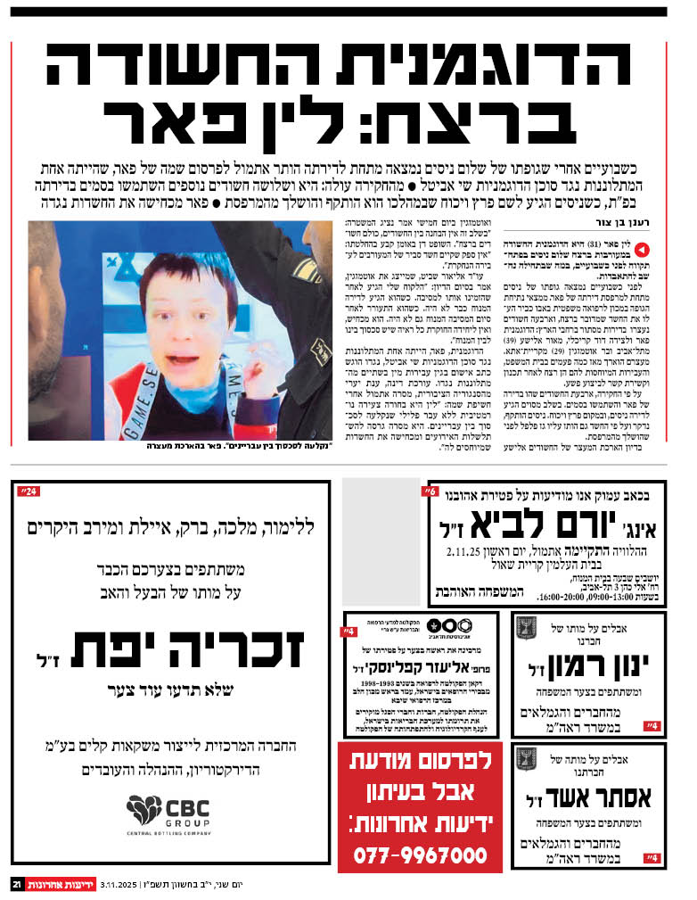 ההלוויה תתקיים ביום שני, 3.11.25,