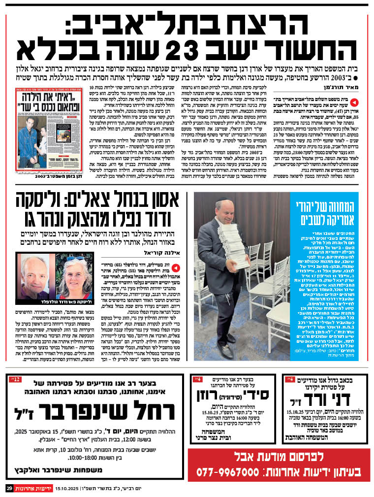 ההלוויה תתקיים ביום שישי 26.9.25