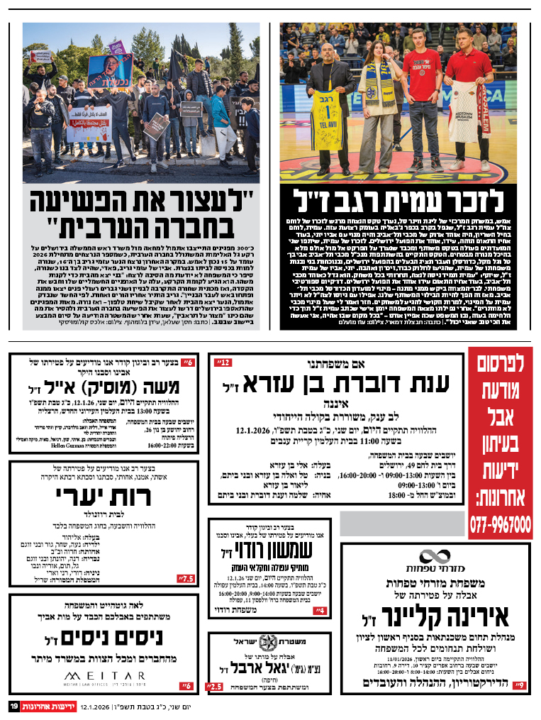 ההלוויה תתקיים מחר, יום שישי, י"ג בטבת תשפ"ו, 02/01/2026