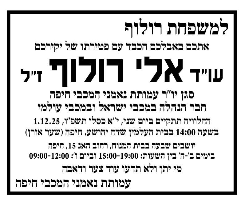 ההלוויה תתקיים ביום שני, י"א כסלו תשפ"ו, 1.12.25